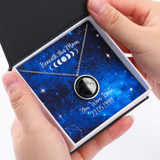 Personalized Birth Moon Phase Charmed Simplicity Necklace with custom card and gift box